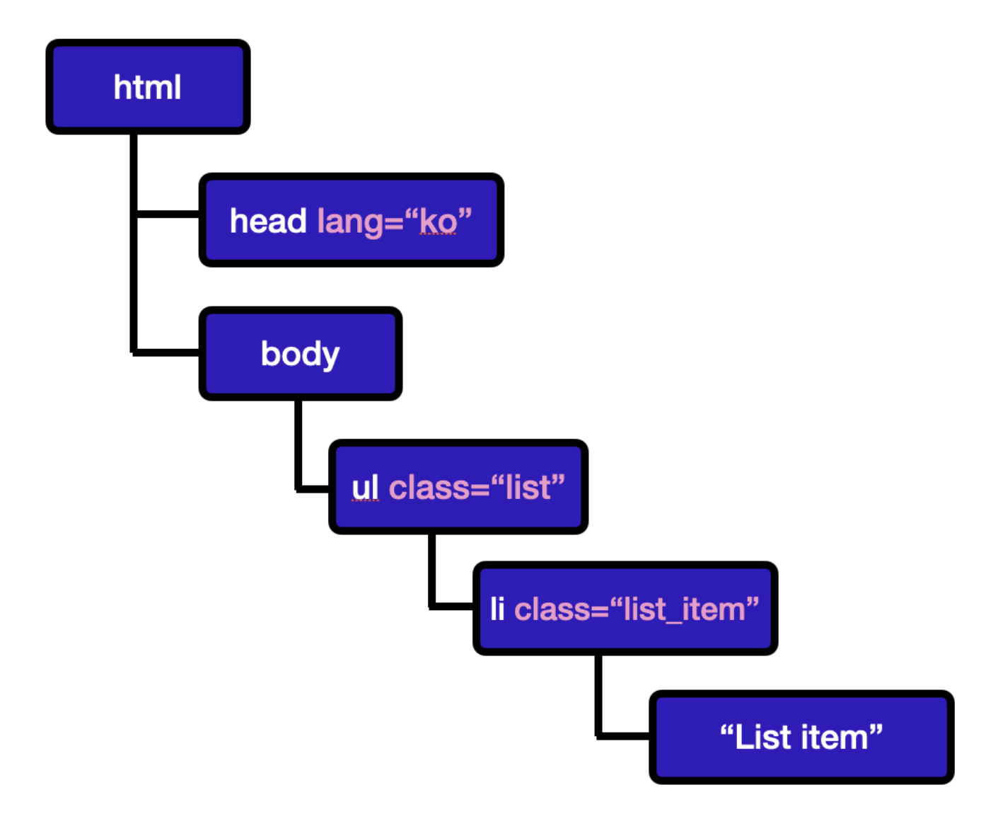 - html 객체에 기반한 js 객체로 표현 가능
