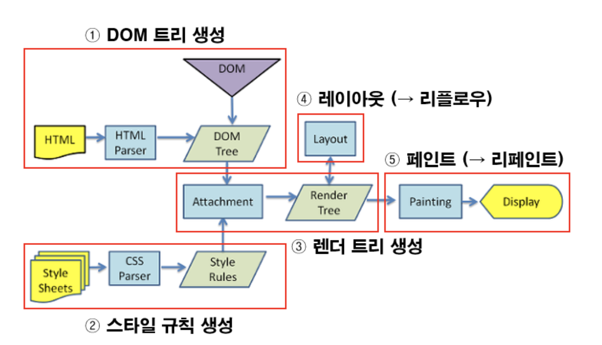 변화 발생시 모든 요소들의 스타일 다시계산, 레이아웃 리패인트까지 과정 다시 반복됨!