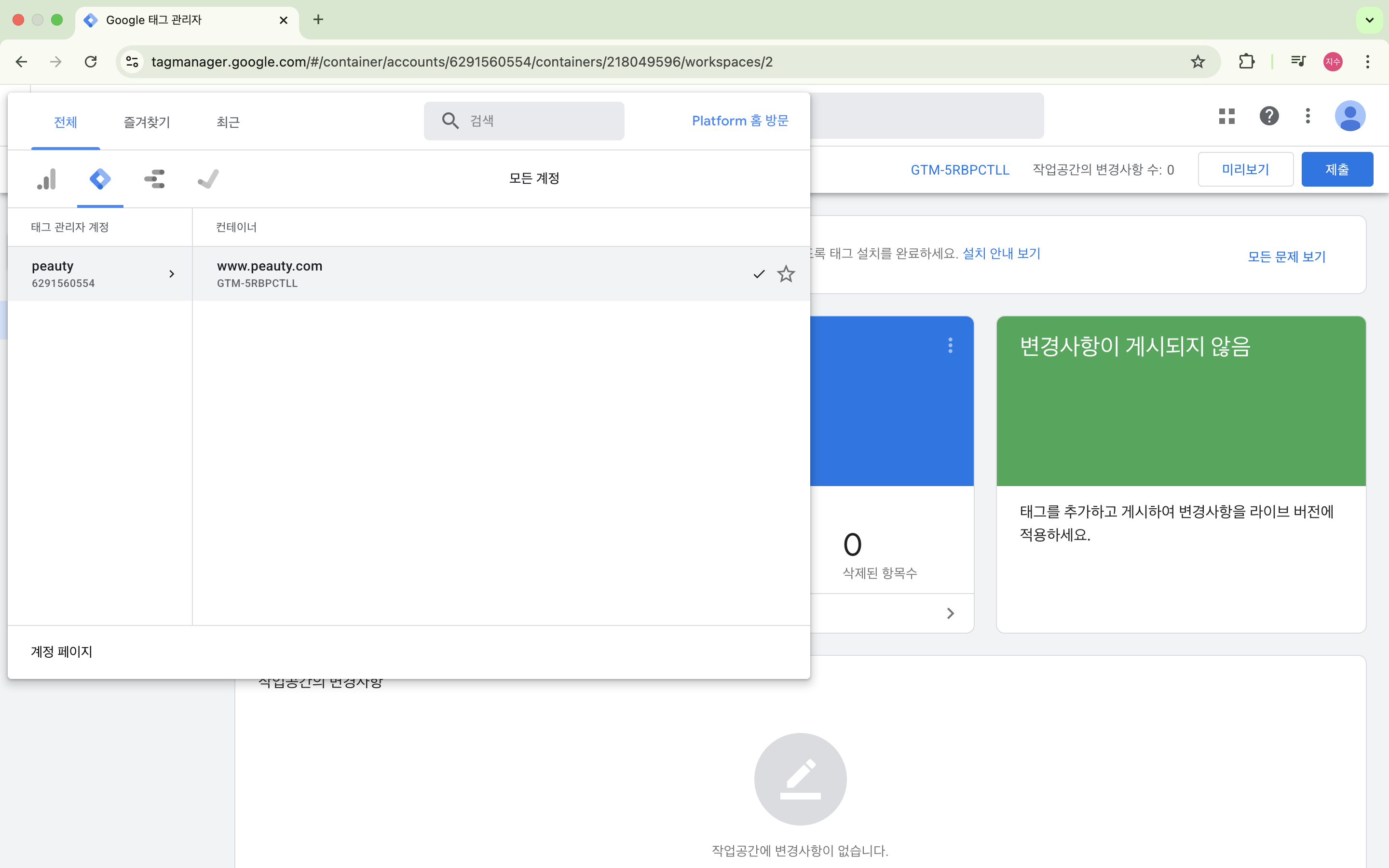 해당 HTML 파일에 있는 GTM 코드는 GTM이 데이터를 수집 및 관리하도록 설정합니다.